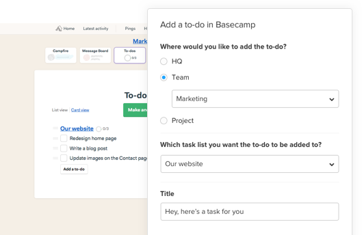 - When a file is added to a folder, a new to-do is created in a project in Basecamp