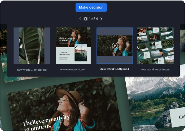 Batch review is a lifesaver for design teams that need approval on multiple types of assets or related files at the same time. For example, a social media campaign may include several slight variations of the same ad, or multiple static designs, videos, and layouts that all use the same design elements in different combinations. Reviewers are not just approving the individual design assets, but the overall intent and flow of the campaign. It's critical to see all of these files together as one group for accurate approval.